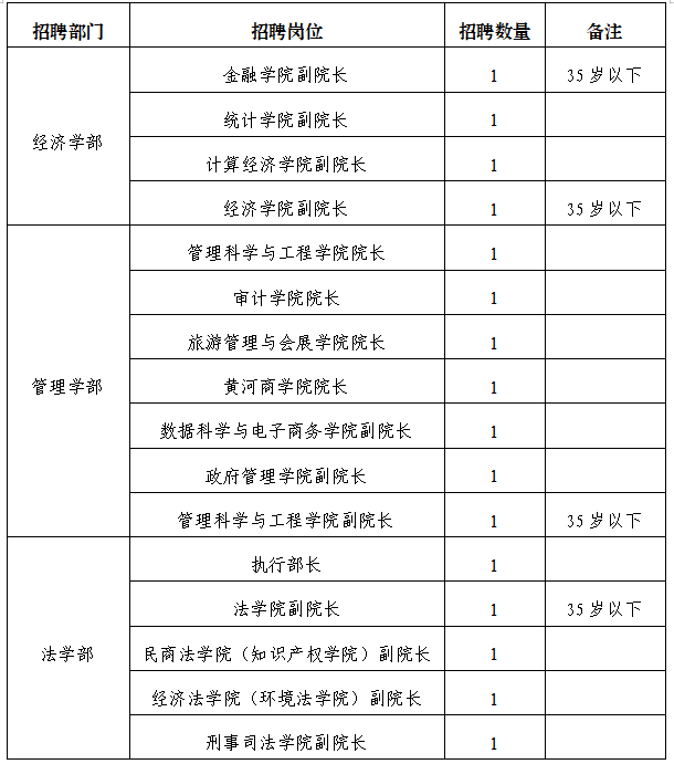 (三)身心健康,能够正常履行岗位职责,执行部长和学院院长年龄一般不超过55周岁;副院长年龄不超过50周岁,其中,金融学院、经济学院、管理科学与工程学院、法学院副院长不超过35周岁。