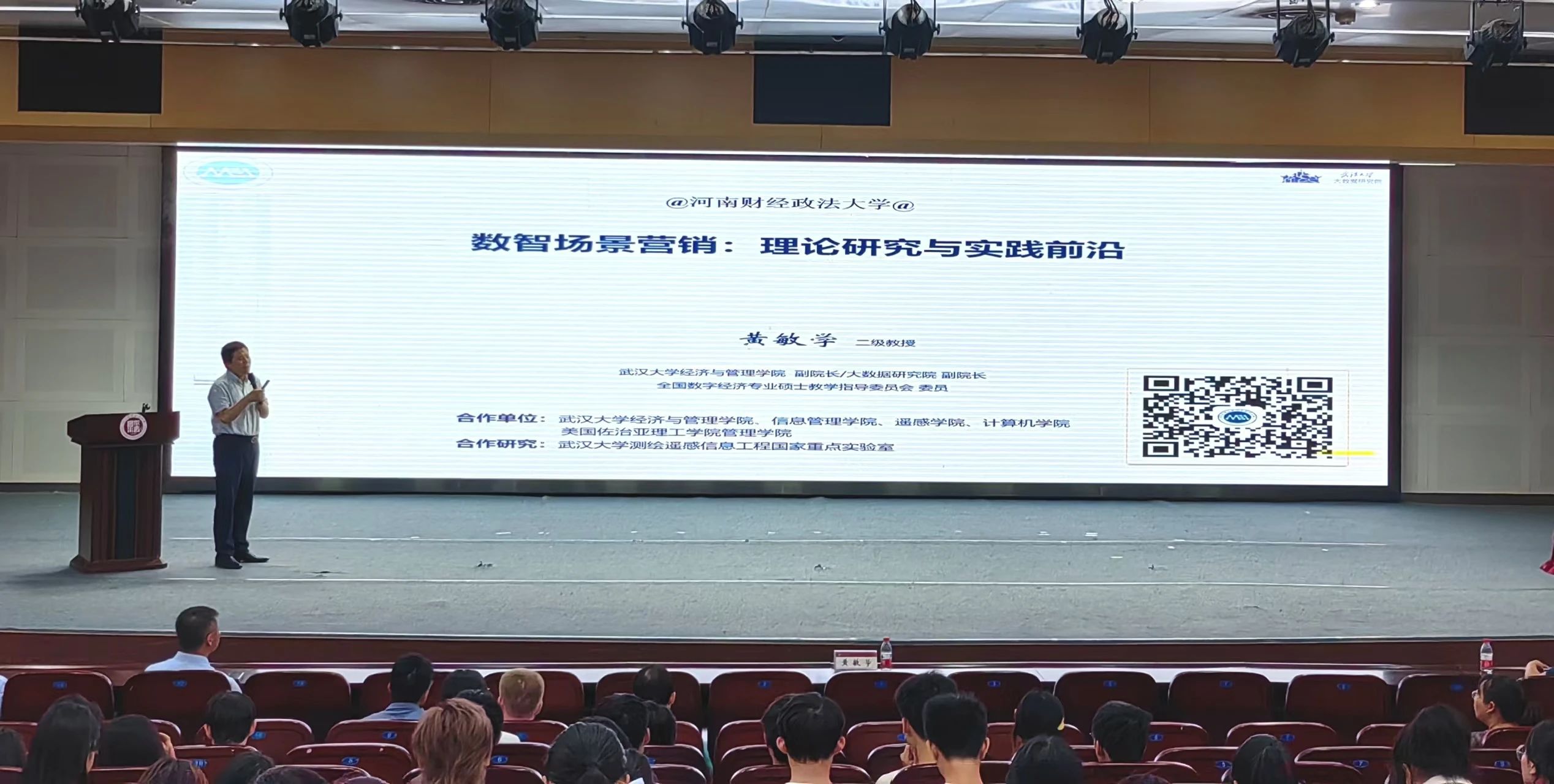 5月26日上午,武汉大学经济与管理学院副院长黄敏学教授应邀到我校进行学术交流,报告会在图书馆一楼报告厅举行,主题为“数智场景营销:理论研究与实践前沿”,由院长王永伟主持,学院部分教师和学生参加了报告会。