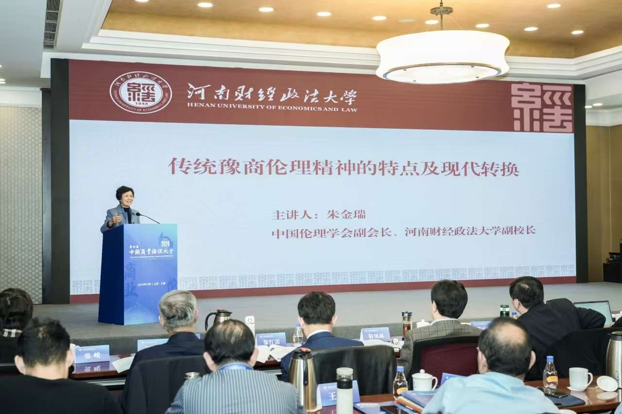 朱金瑞副校长就“传统豫商伦理精神的特点及现代转换”作主旨演讲,主要从豫商的历史发展、传统豫商伦理精神的特点和传统豫商伦理精神的现代转换这三个方面进行阐述。她指出,“老家河南,心灵故乡”,豫商作为中国古代十大商帮之一,拥有悠久的历史和深厚的文化底蕴。豫商伦理精神的现代转换是对传统商业道德的继承与创新,体现了豫商对诚信、责任、创新等核心价值的坚守,对传统价值的尊重和对现代商业环境的适应,必然在中国式现代化进程中焕发出更加璀璨的光芒。