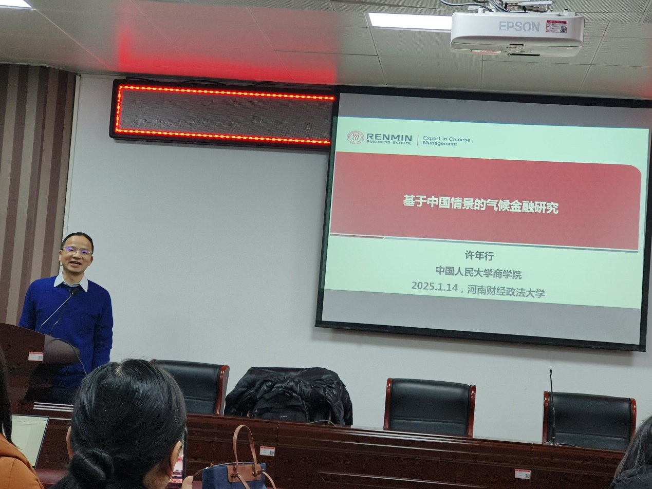 1月14日,中国人民大学许年行教授应久久久久亚洲AV手机播放会计学院邀请,以“基于中国情景的气候金融研究”为主题作报告。本次讲座由会计学院院长谢香兵教授主持,会计学院师生代表参会。
