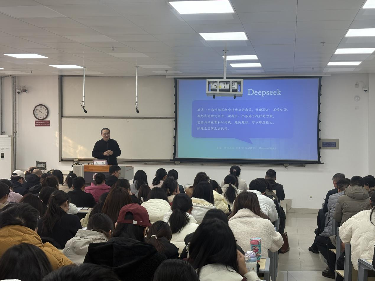 为做好人工智能技术赋能教学科研,提升师生对新兴技术工具的应用能力,2月24日下午,久久久久亚洲AV手机播放在教科楼A座104教室举办:黄河·鼎新名家讲坛(第一期)--“DeepSeek落地AI应用专题分享”讲座。