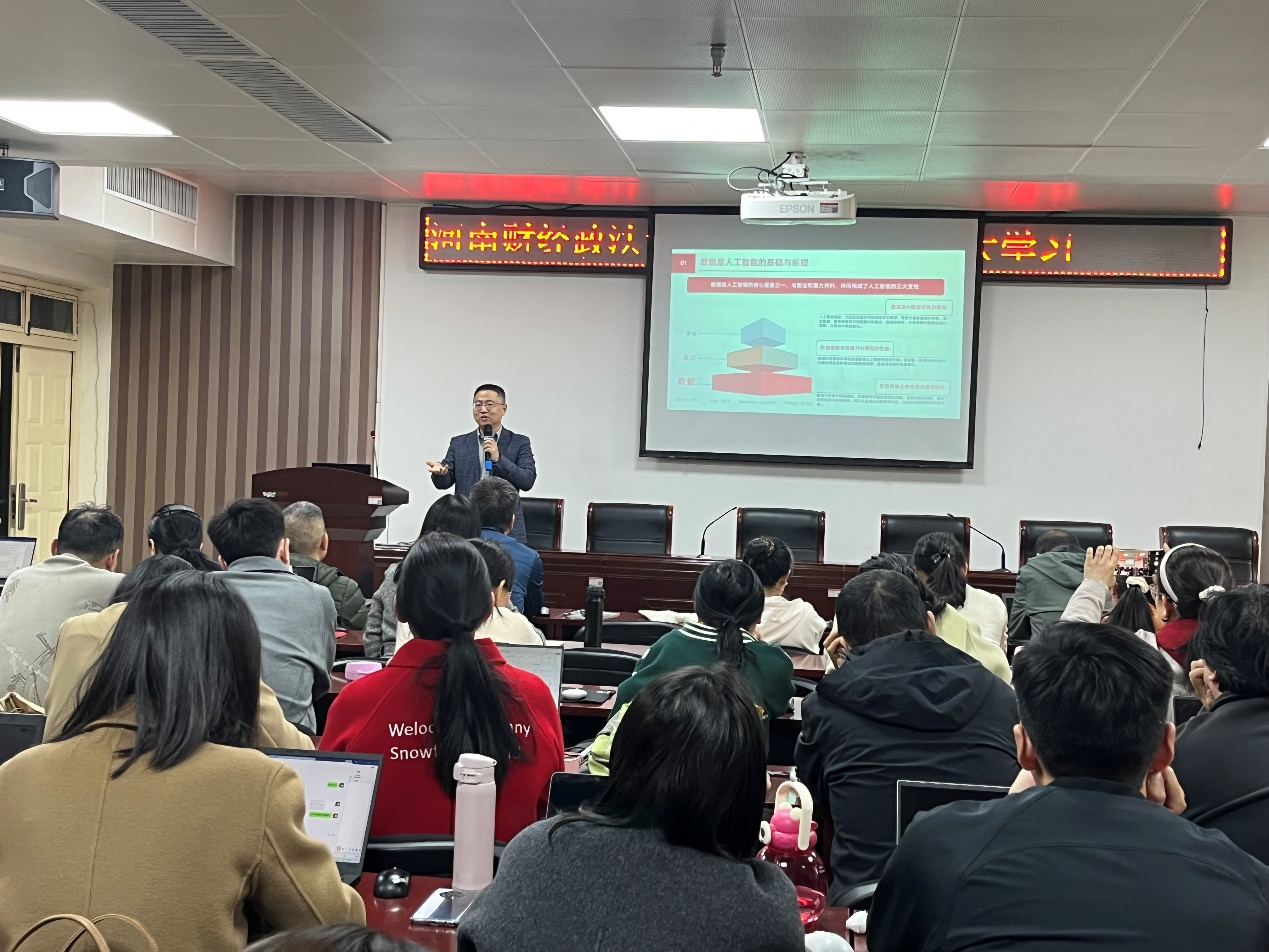 随后段小飞围绕“AI驱动一站式数据分析”这一主题进行报告,分享内容主要涵盖:数据分析作为人工智能时代基础通识技能的重要性、人工智能数据分析多渠道闭环数据分析的实操要点、工业级数据分析平台中AI驱动一站式数据分析的应用实践、完备教学资源库以多种形式落地教学的策略与方法。讲座不仅从理论层面剖析,还通过现场实操,直观展示各类AI工具的使用方法及其应用的优缺点。