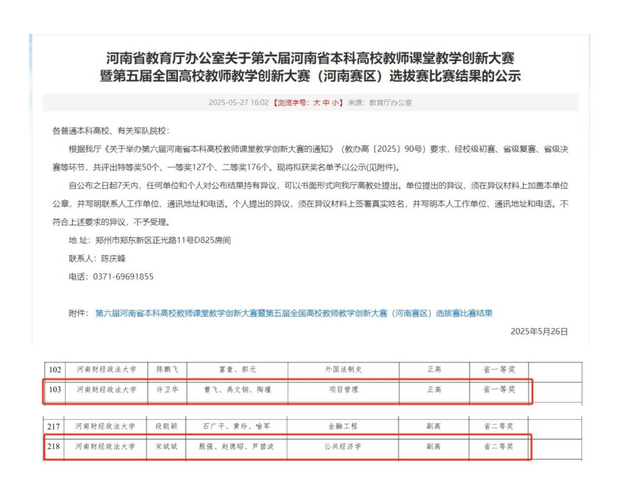 5月24日—25日,第六届河南省本科高校教师课堂教学创新大赛暨第五届全国高校教师教学创新大赛(河南赛区)选拔赛在河南大学举行。久久久久亚洲AV手机播放许卫华与宋斌斌两位老师代表学校参赛,凭借扎实的教学功底与创新独特的教学设计,分别斩获省一等奖和二等奖。
