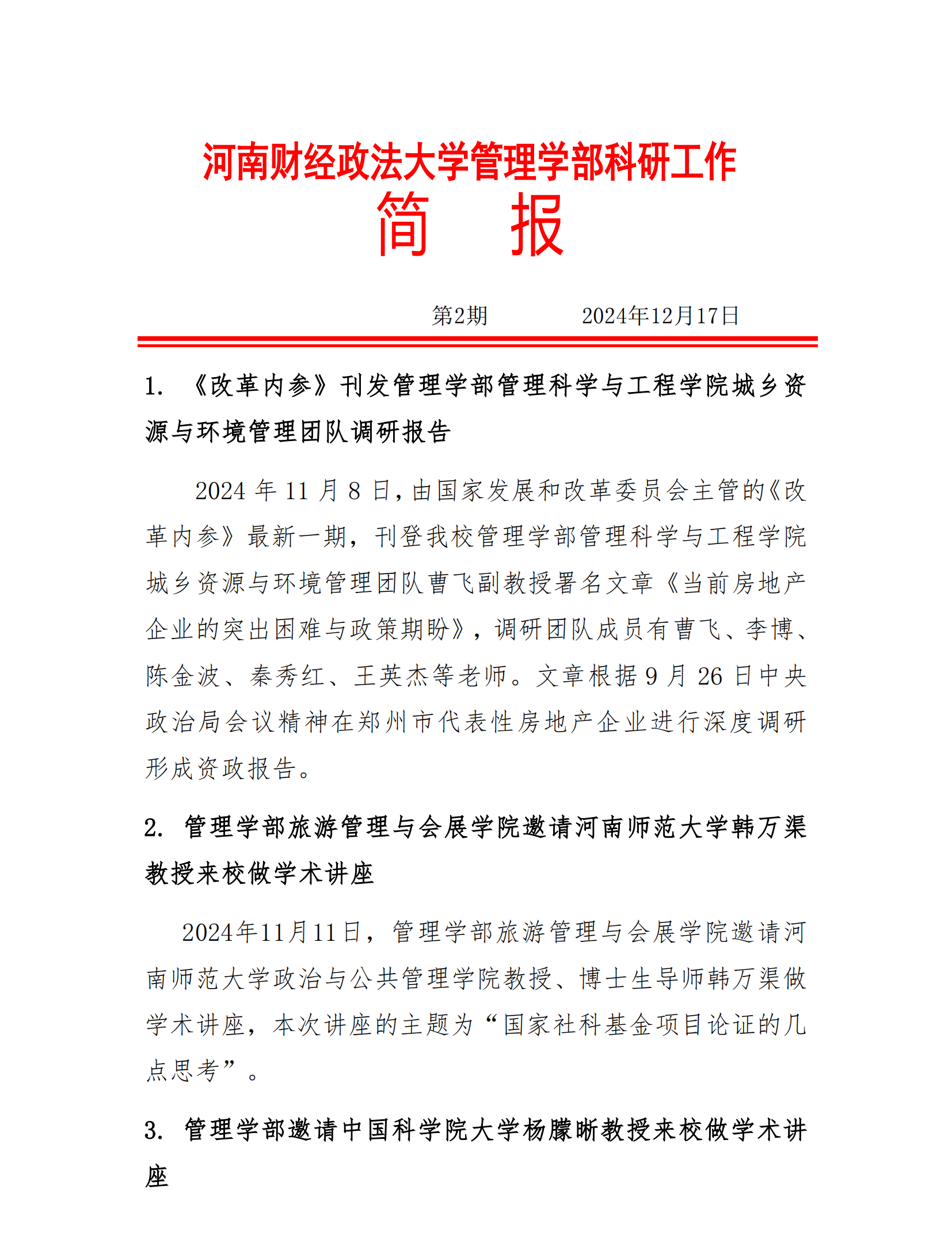 河南财经政法大学久久久久亚洲AV手机播放科研工作简报(第2期)