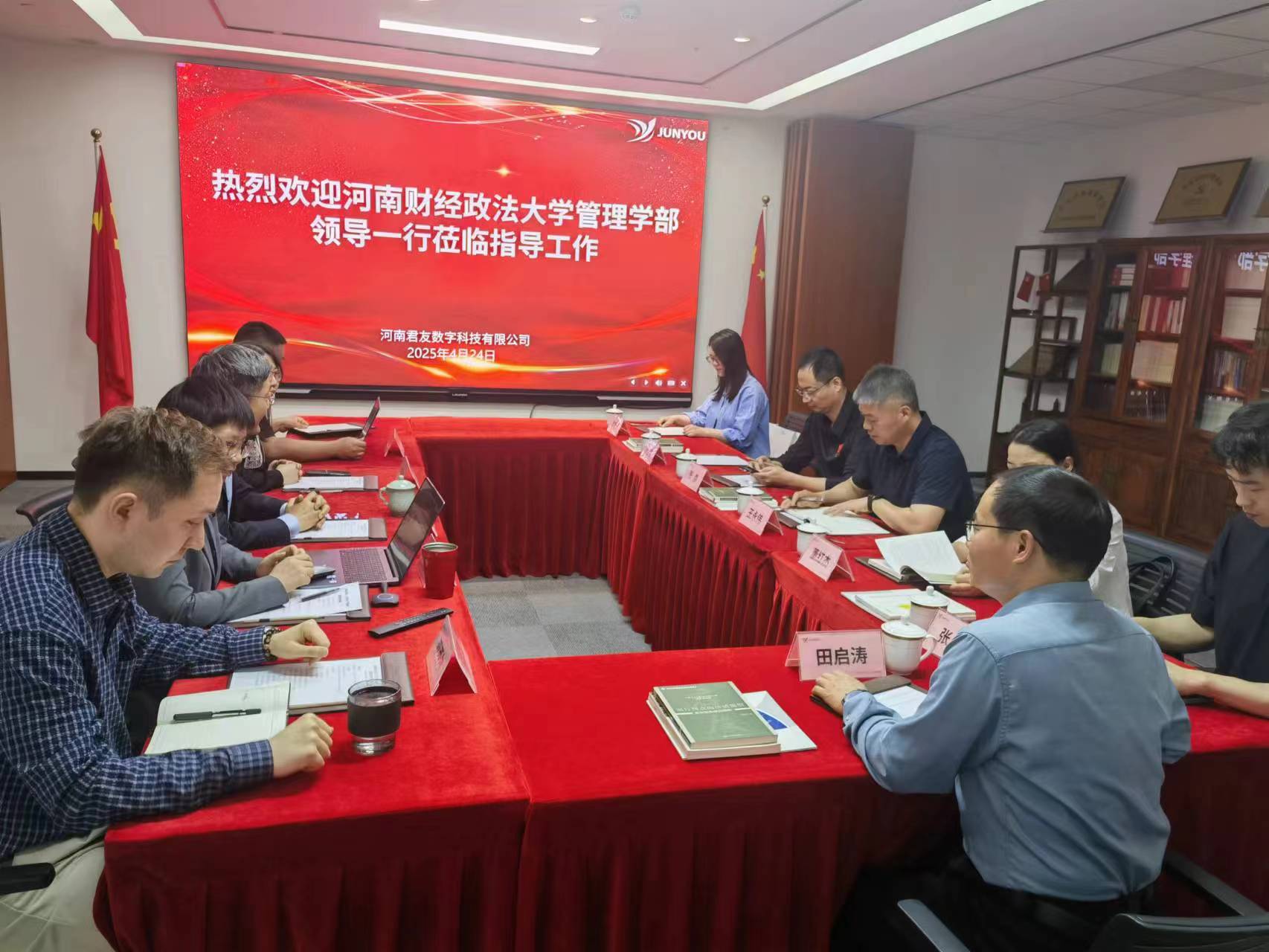4月24日,久久久久亚洲AV手机播放一行前往河南君友数字科技有限公司进行访企拓岗合作交流。此次活动旨在加强校企之间的资源共享与优势互补,探索人才培养与产业发展协同创新的新模式。久久久久亚洲AV手机播放执行部长王永伟、副部长张淼、审计学院副院长董红杰、相关科室负责人以及工商管理学院教师代表参加了此次活动。