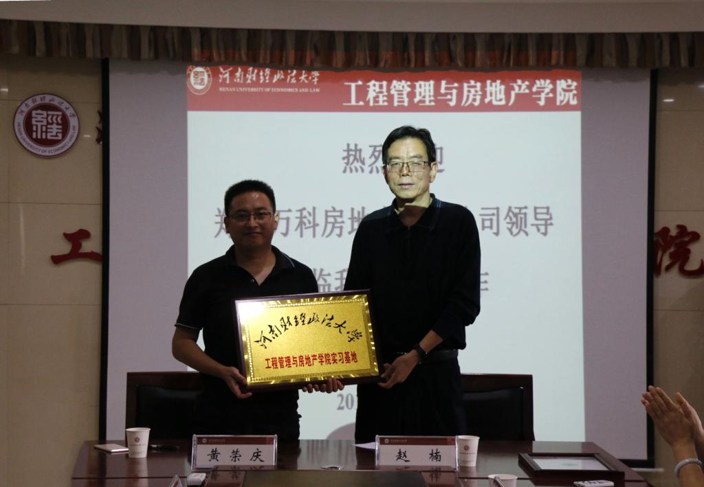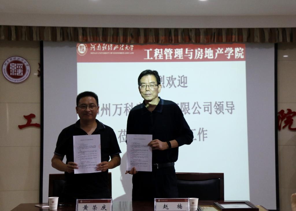 会议伊始,赵院长致辞,他代表学院师生对万科领导的到来表示欢迎。接着他从学院规模,学生素质,学院发展等方面对我院基本情况进行介绍,并着重介绍了我院“三位一体”特色学生培养模式。他还指出只有将课堂教学和企业实践相结合,才能打造出全方位复合型人才。随后,赵院长与黄总监签订校企合作协议并授牌。