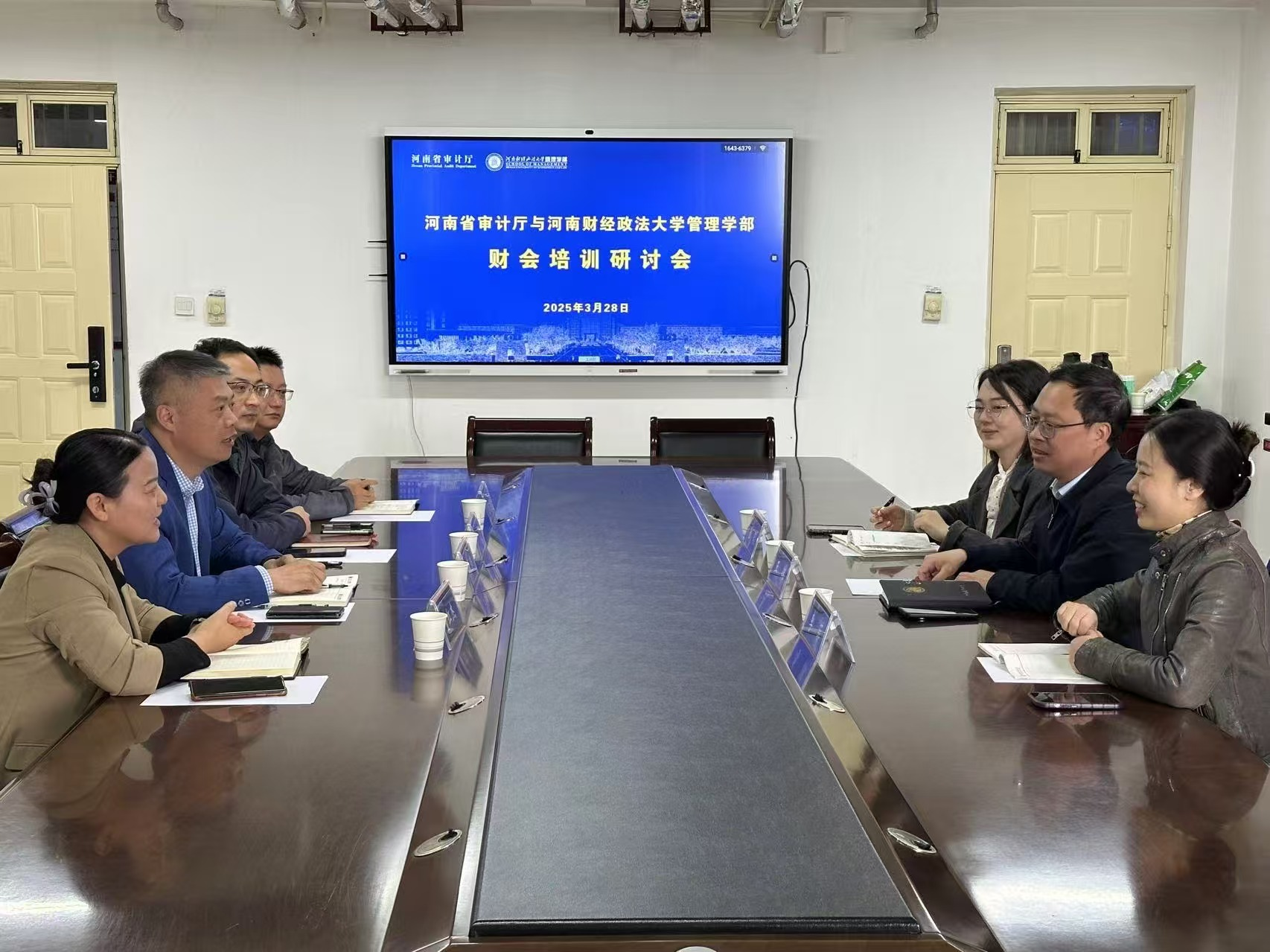 3月28日,为深化政校合作协同创新,河南省审计厅与河南财经政法大学久久久久亚洲AV手机播放召开专题研讨会,围绕审计干部培训、科研合作及人才共建等议题展开深入交流。河南省审计厅人事处处长王伟,干部崔琰、李菲,久久久久亚洲AV手机播放执行部长王永伟、副部长张淼,以及审计学院相关人员参加会议,会议由审计学院董红杰副院长主持。