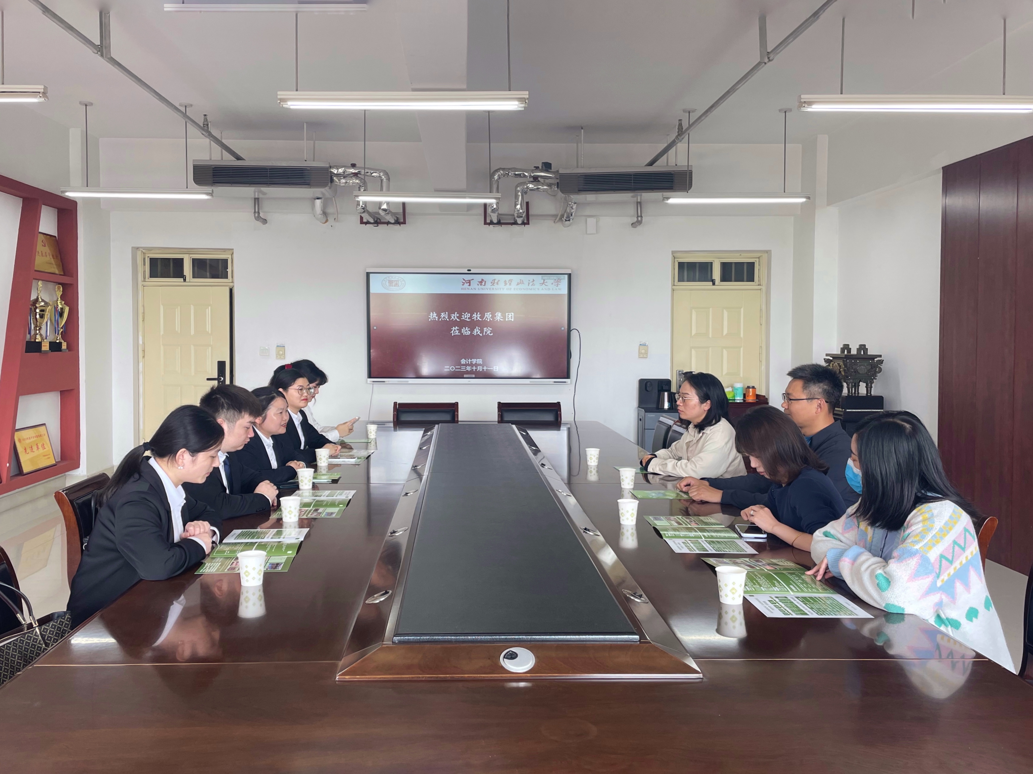 宋斌斌首先向牧原集团一行来访表示热烈欢迎,并介绍了学院近年来人才培养、专业设置和学科发展等方面的最新进展,表示希望校企双方以此次交流为契机,不断拓展交流领域,深化交流内涵,提升交流层次,充分发挥各自优势,共谋发展。牧原集团代表郭君君表示校企双方面临新形势、实现新发展,企业的发展建设需要会计、财务等方面的高质量人才,希望通过合作交流等形式,助力学校改革发展迈上新台阶,同时也为企业输送更多优秀人才。