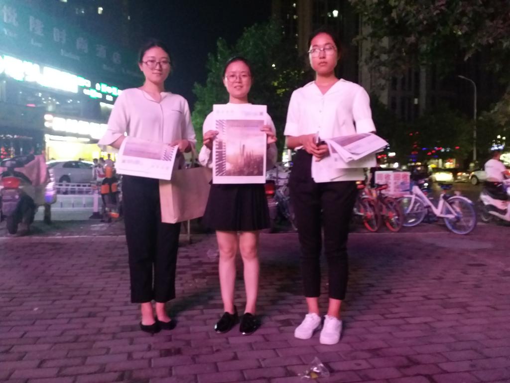 销讲大关之后,实践队员们被分为两组,每组都有自己的项目经理带领,每位实践成员也都配有自己的师傅,一对一讲解指导工作方法及经验,训练营的主要任务是电访、外场拓客及内场接待。电访时,对客户的来电耐心地答复,他们真诚而详细的讲解赢得了顾客们的好评与信赖;内场接待时,训练营成员们在售楼部为客户积极展示项目的区位图、鸟瞰图和户型图;外场拓客时队员们熟悉了街道的各个点位,顶着炎炎烈日主动地向行人介绍产品内容,每天奋战到晚上9点钟,认真完成了项目总监布置的拓客任务。在每一项工作中训练营成员们都表现出财大学子肯吃苦、多动脑、敢为人先的精神风貌。队员们也慢慢了解到房地产行业是个高付出、高风险的行业,希望自己在训练营中有更多的学习和成长。
