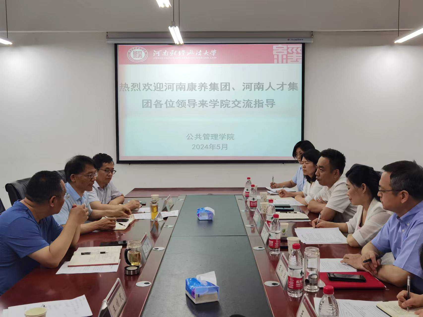 5月22日上午,河南人才集团总经理王利军、河南省产教一体研究院有限公司副总经理王兰、河南康养集团总经理刘雪梅、党总支书记郭鸣、总会计师高洁、综合管理部副主任董守霞、河南康养集团许昌颐养中心院长寇赛等一行人应邀来我院沟通交流,学院党委书记刘英杰、副院长龚文海、劳动与社会保障教研室主任陈书伟、王增民老师参加交流。双方围绕养老服务管理微专业建设、养老服务管理专业人才培养、合作共建高端论坛和智库等事宜,进行了深入交流,并就下一步合作达成共识。