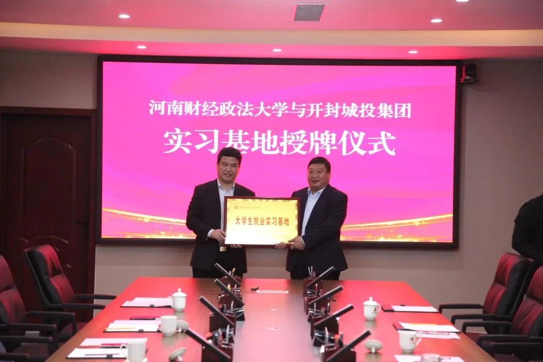 2023年5月11日,河南财经政法大学副校长刘荣增赴开封城市投资运营集团开展“访企拓岗促就业”活动,双方签订校企战略合作协议并举行实习基地授牌仪式。旅游与会展学院全体班子成员陪同访企拓岗,并参加了签约、挂牌仪式。