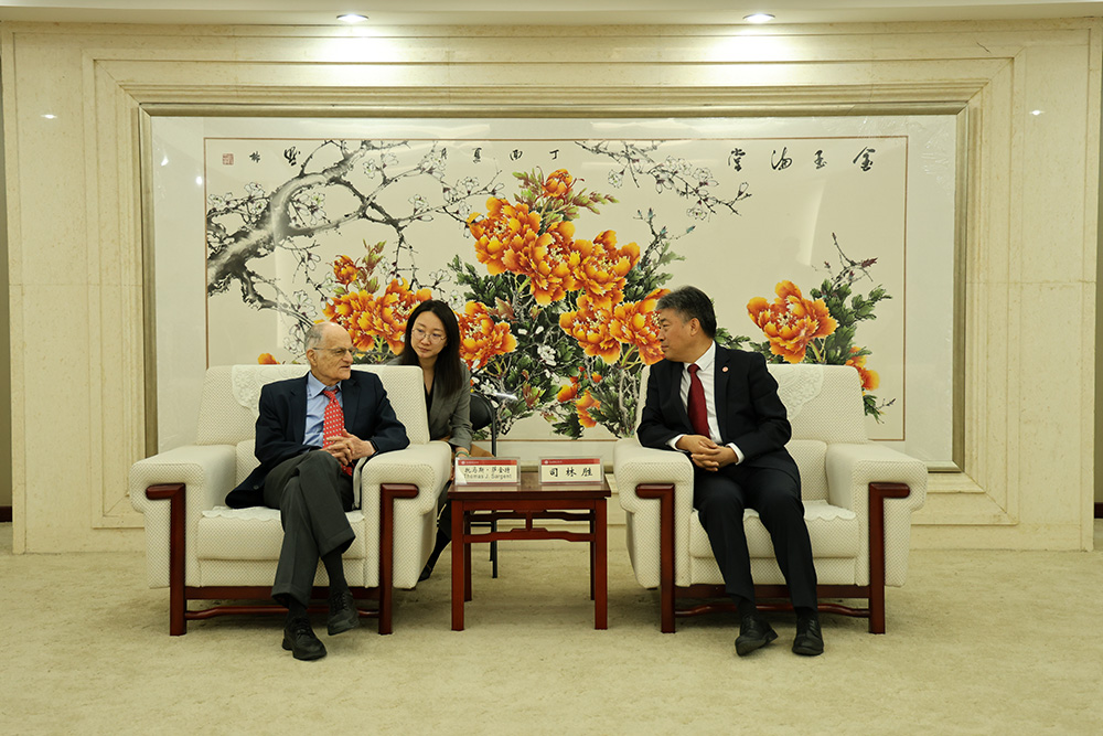 报告会前,司林胜会见了萨金特教授,与他进行了亲切的交流。萨金特题写美好寄语,为师生送上良好祝愿。