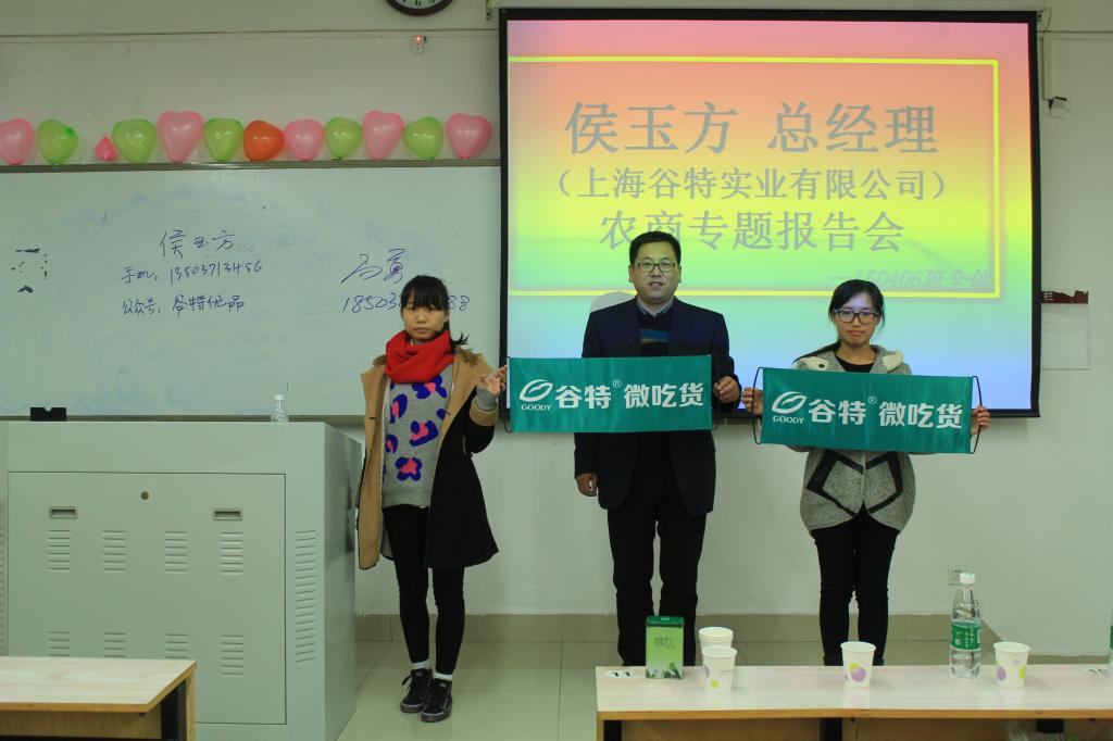 马老师首先指出,同学们要在课堂学习、社会实践、课外活动、兴趣爱好等方面全面发展,并提出零挂科、零作弊、禁懒觉、禁网虫的严格要求。随后,绳娜和侯经理作为校外导师先后为同学们作专场报告。绳娜老师建议同学们在完成自己专业的基础上,依据个人的兴趣爱好,合理安排时间,培养一技之长。侯经理和同学们分享了自己的创业经历,并结合自己的工作实际为大家介绍了从事现代优质农产品销售这一工作的有益经验。