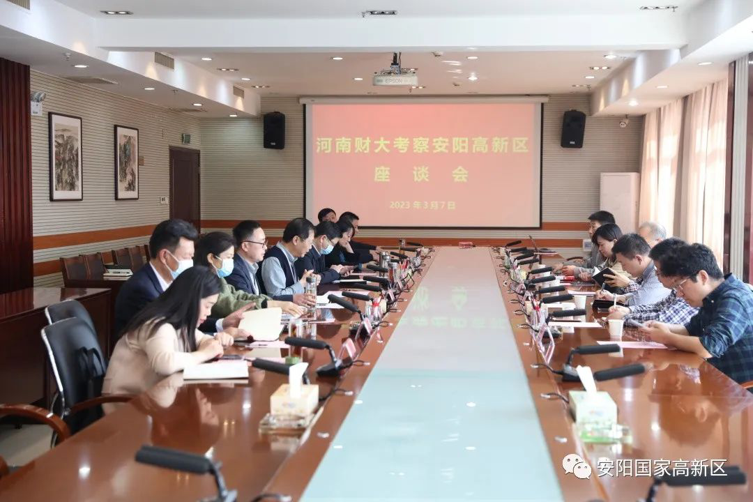 2023年3月7日,旅游与会展学院院长赵现红带领全体班子成员前往安阳高新区进行考察并召开座谈会。文峰区委书记、安阳高新区党工委书记会见了我院领导。管委会主任牛福生,副主任秦俊洲、王峰,组织人力资源局、财政金融局、投资促进局、银杏产业园区、建投公司负责人等参加了座谈会。