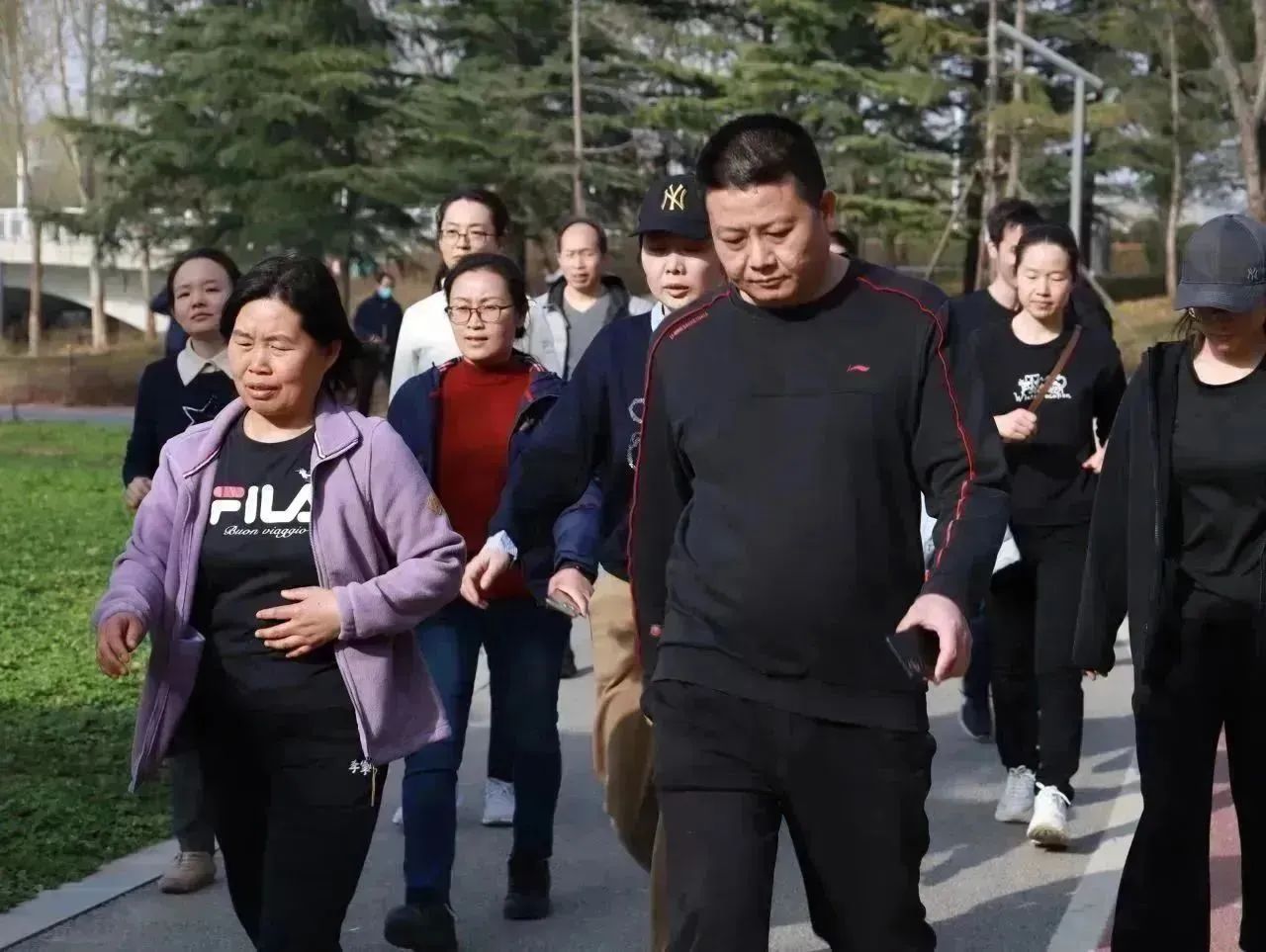 大家在湖心岛环道上集合,工会主席赵绍春介绍了本次活动的基本路线、规则以及注意事项,党委书记赵辉宣布活动开始。老师们沿塑胶步行道环湖而行,神采奕奕,步履矫健,一路品春色、赏湖景。大家的欢声笑语在龙子湖上飘荡。