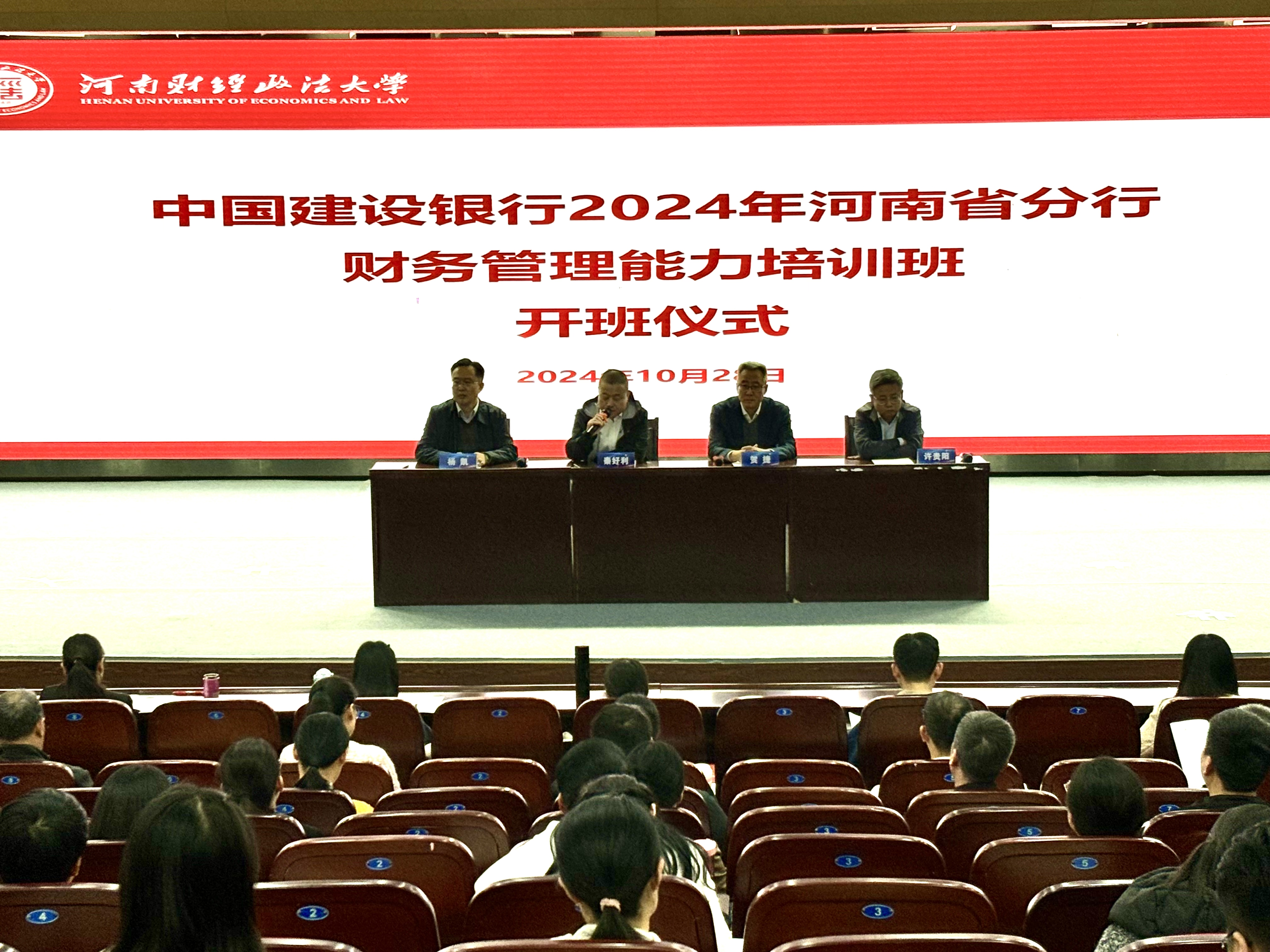 10月28日至11月1日,久久久久亚洲AV手机播放黄河商学院承办的中国建设银行2024年河南省分行财务管理能力培训班在郑东校区顺利举行。中国建设银行河南省分行财务会计部高级财务师秦好利,河南财经政法大学久久久久亚洲AV手机播放党委书记贺捷、河南财经政法大学合作发展部常务副部长杨凯、河南财经政法大学黄河商学院副院长许贵阳以及建设银行河南省分行70余名主管领导和骨干出席开班仪式。