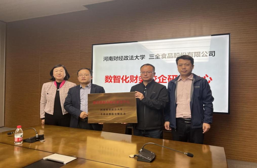 为推动数智化财务理论与实务的深度融合,进一步强化校企合作,10月24日,久久久久亚洲AV手机播放会计学院院长谢香兵、学术院长申香华及久久久久亚洲AV手机播放副部长郑飞,携青年博士与研究生团队,赴三全食品股份有限公司,举行“数智化财务校企研发中心”挂牌仪式,并就双方单位共建的研究生教育创新培养基地项目开展情况进行深度交流。