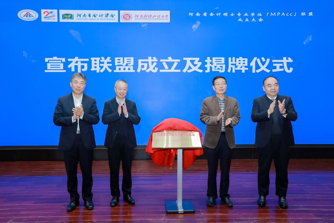 校党委书记、校长司林胜,河南省会计学会会长杨文献,河南省教育厅二级巡视员曹克舜,全国会计专业学位教育指导委员会副主任委员王化成分别致辞,并共同为联盟揭牌。