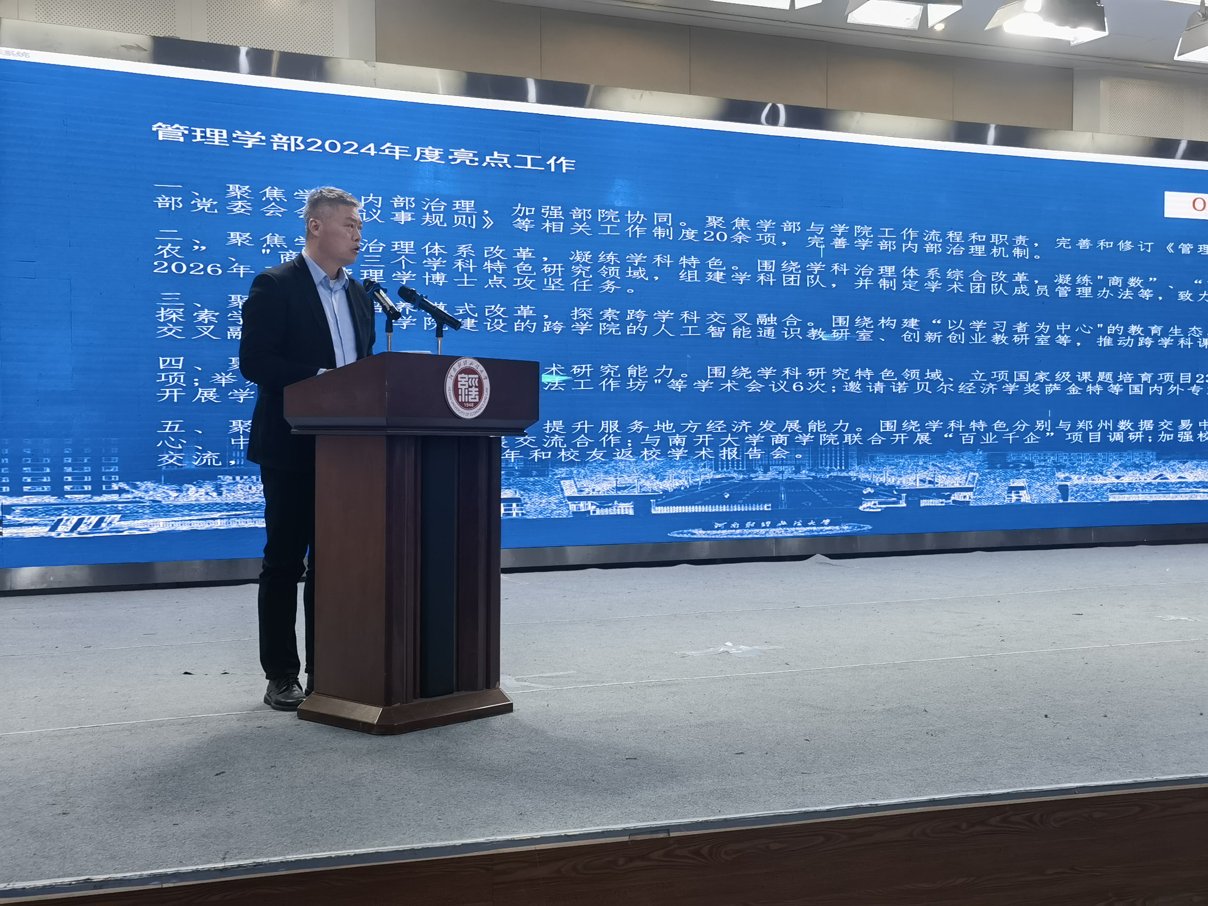 随后,工商管理学院、管理科学与工程学院、会计学院、审计学院、旅游管理与会展学院、数据科学与电子商务学院、政府管理学院、国际商学院等学院领导班子依次进行了述职报告,全面汇报了本单位一年来工作完成情况和工作中的业绩、亮点、主要存在的问题、改进措施及2025年工作计划。