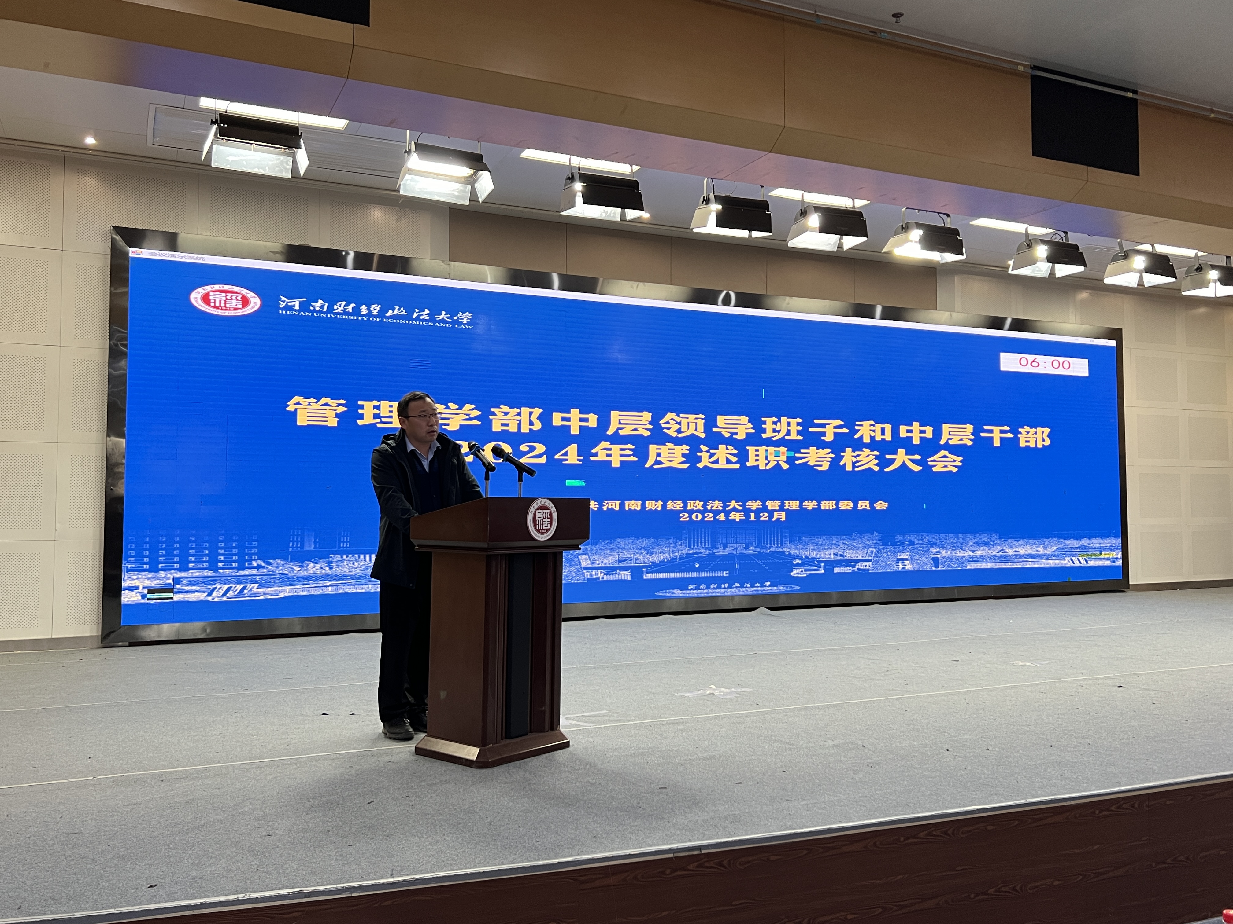 12月30日下午,久久久久亚洲AV手机播放在图书馆报告厅召开中层领导班子和中层干部2024年度述职考核大会,校党委统战部部长杜建勇带领校考核组成员出席会议并讲话,学部领导班子成员、各学院领导班子成员以及全体教职工参加会议,会议由学部党委书记贺捷主持。