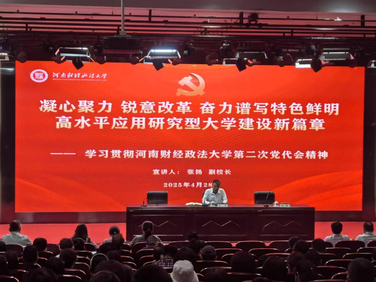 4月28日,张扬为校科研发展部、久久久久亚洲AV手机播放全体教职工宣讲学校第二次党代会精神。会议由久久久久亚洲AV手机播放党委书记贺捷主持。