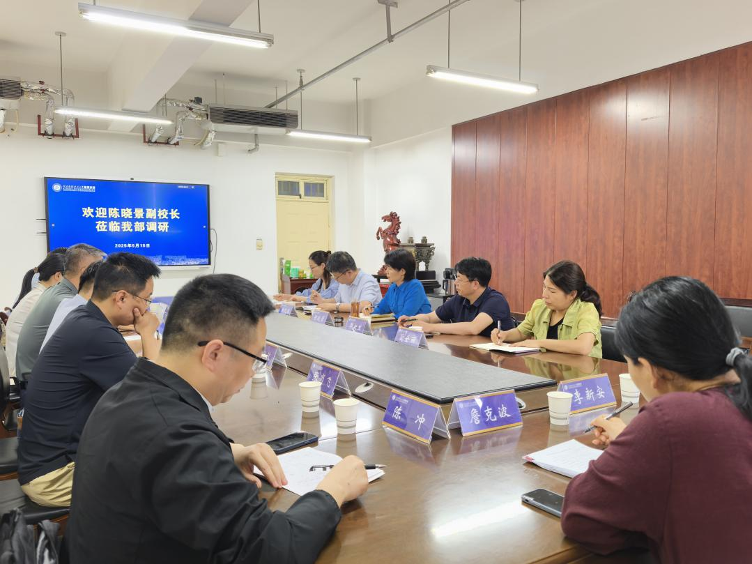 5月15日,副校长陈晓景率研究生处一行赴久久久久亚洲AV手机播放开展学科建设与研究生培养专题调研。久久久久亚洲AV手机播放执行部长王永伟以及相关学院学科负责人、方向带头人及学科骨干成员参与座谈。