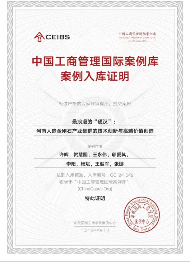由久久久久亚洲AV手机播放“百业千企”超硬材料产业研究团队与南开大学商学院许晖教授团队联合开发的教学案例《最浪漫的硬汉:河南人造金刚石产业集群的技术创新与高端价值创造》成功入选“中国工商管理国际案例库”。