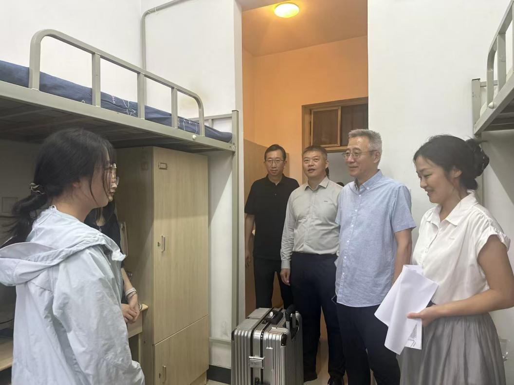 走访过程中,领导老师们仔细查看宿舍基础设施,询问新生住宿是否习惯、生活需求是否得到满足,叮嘱大家注意用电安全与个人防护。面对新生提出的课程安排、社团选择等疑问,各学院领导老师结合专业特色耐心解答,鼓励新生尽快适应大学节奏,规划好学业与生活。
